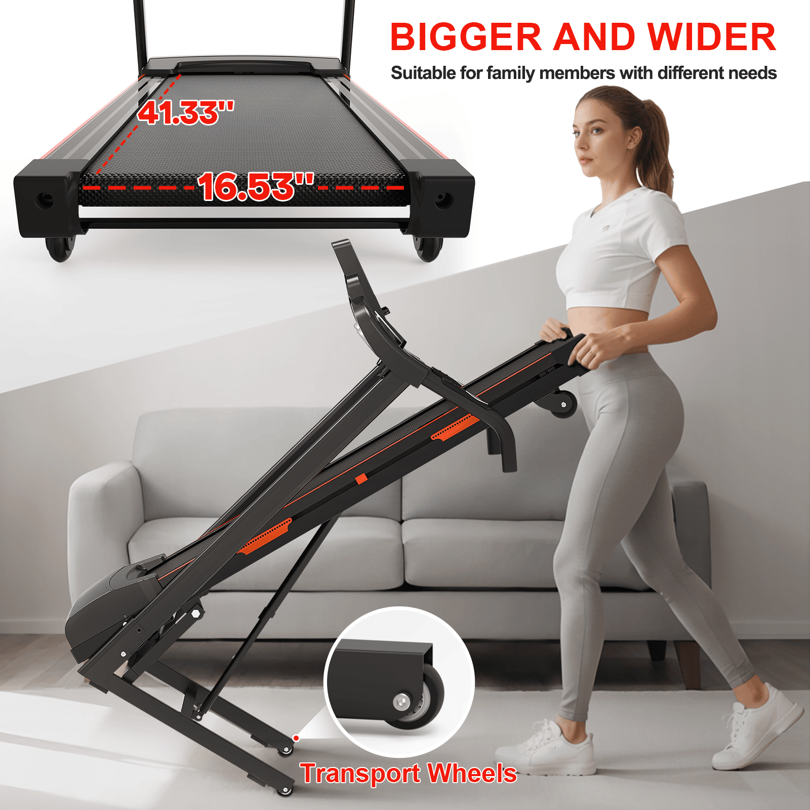 1.Enjoy the convenience of exercising at home with this foldable treadmill. With its space-saving design and easy move wheels, this treadmill is perfect for any home gym.